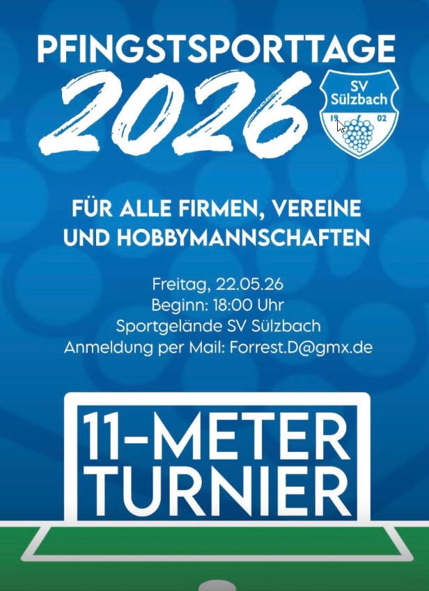 Unsere diesjährige Mitgliederversammlung findet am Freitag, 27. März 2026, ab 20.00 Uhr in der Gemeindehalle Sülzbach statt.
